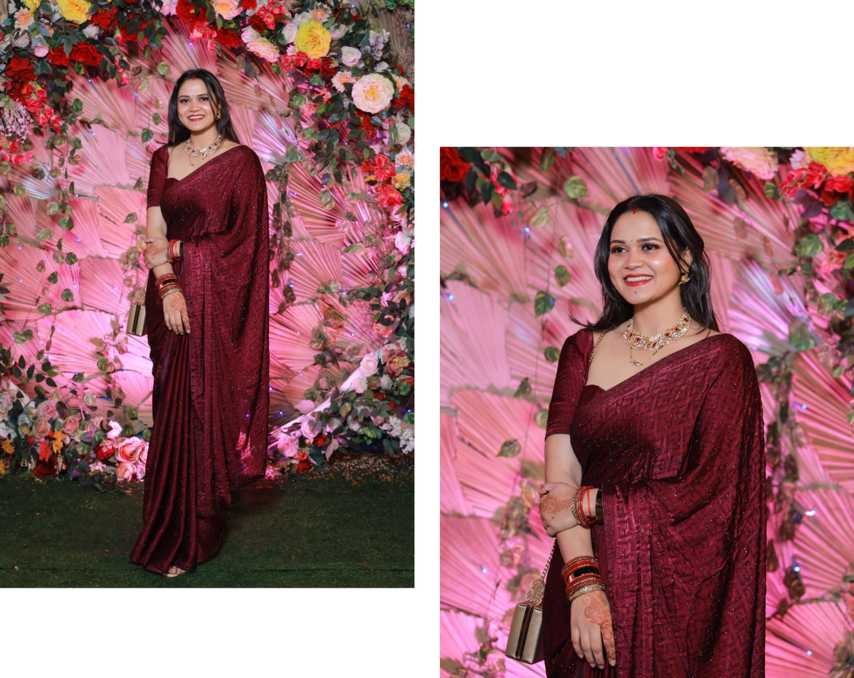 A rich maroon drape with subtle shimmer and elegant texture, crafted to bring out timeless beauty.